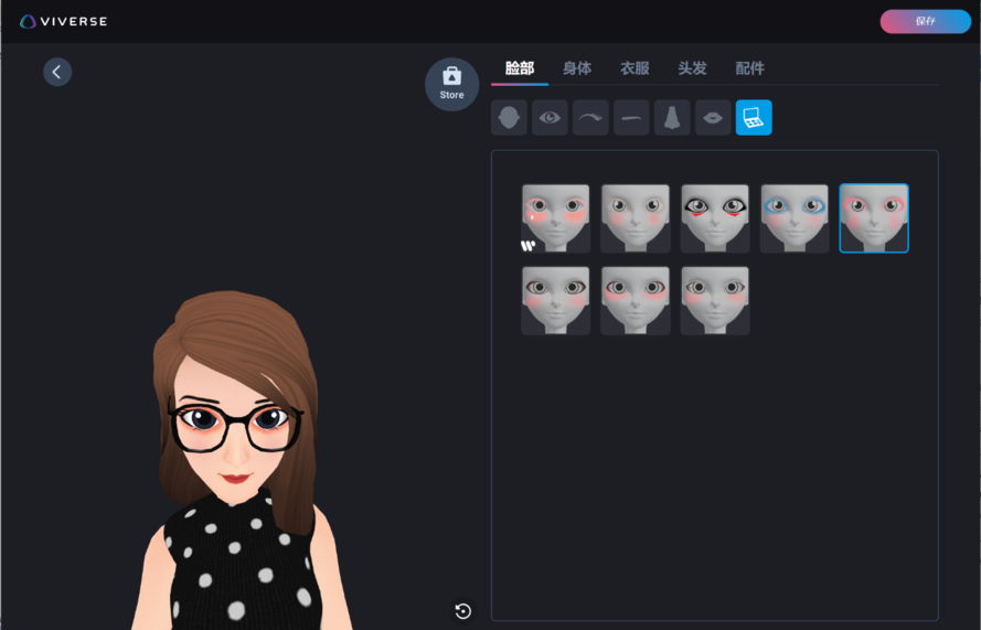 5、选好基础模型后,在页面的右侧会出现个性化配置,可以根据自己的喜好选择自己喜欢的风格进行装饰,如果对已创建的虚拟形象感到非常满意,就可以单击右上角的【保存】按钮将创建好的虚拟形象进行保存了。