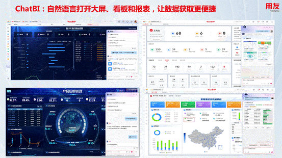 在实际操作中, ChatBI分为问数、出图表、数据洞察三个环节。问数环节,支持自然语言交互和推荐式交互,降低了用户获取数据的门槛,提高了效率;出图表环节,能够自动制作报表,实现数据接入、处理、建模以及可视化图形呈现;数据洞察环节,通过预置归因算法,进行智能数据洞察,生成分析结果和决策建议,并对结果进行智能解读;此外,在实际业务场景中,用户可以通过自然语言打开大屏、看板和报表,快速获取数据,如在企业的研发管理、采购管理、销售管理等场景中,ChatBI都能够发挥重要作用,帮助企业更好地进行数据分析和决策。