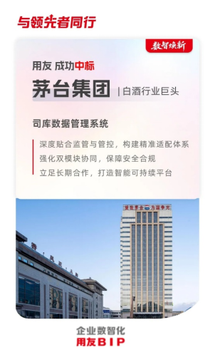 近日,用友凭借在大型集团企业司库管理领域的深厚积累与领先实力,成功中标中国贵州茅台酒厂(集团)有限责任公司(以下简称“茅台集团”) 司库数据管理系统建设项目 。该项目将助力茅台集团构建精准适配、安全合规、智能高效的司库数据管理体系,为其实现高质量发展提供强有力的数智化支撑。