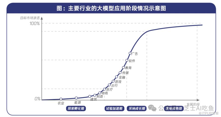 目前,不同行业在大模型技术的应用上呈现出明显的不平衡。总体而言,数字原生行业由于其数据基础好、业务场景适合,对大模型技术接受度更高,应用也更加广泛深入。而传统行业受限于数据质量、业务复杂度等因素,大模型应用还处于探索阶段。