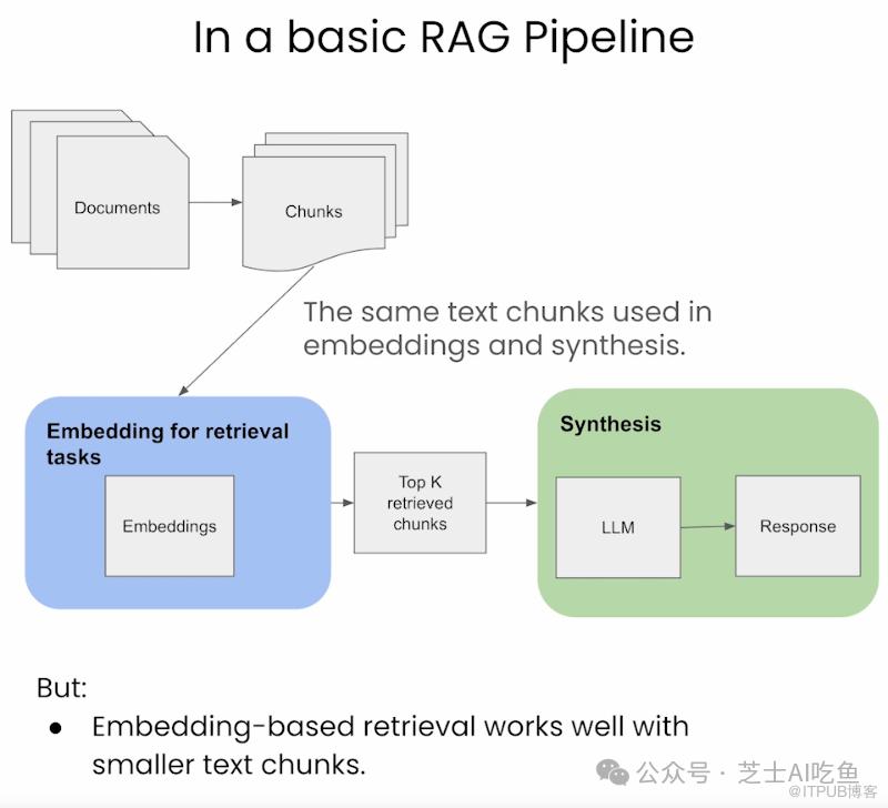 在 RAG 中,每个分块都将被编码成嵌入向量以便检索。更小、更精确的块可以实现用户查询内容之间更精细的匹配,从而提高检索信息的准确性和相关性。