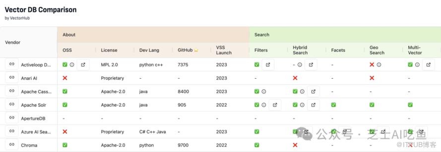 VectorHub 提供的 向量数据库对比 是一个很好的资源,它涵盖了 37 家厂商和 29 项特性(截至本文撰写时)。