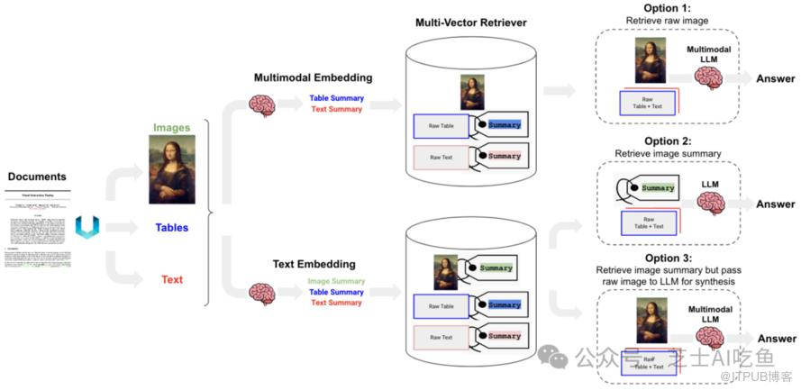 当不能使用多模态 LLM 进行答案合成时(例如,成本等),选项 2 是合适的。