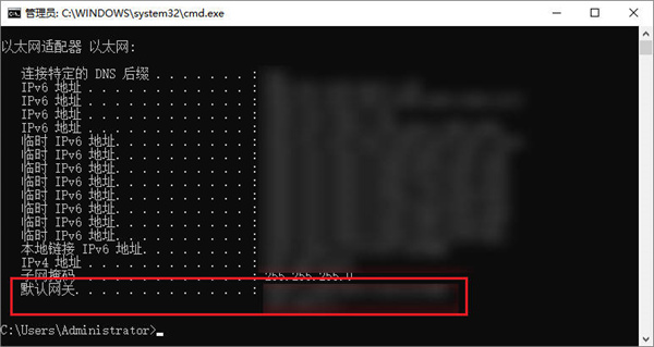 3、在显示的信息中找到“默认网关”一行即可查看。