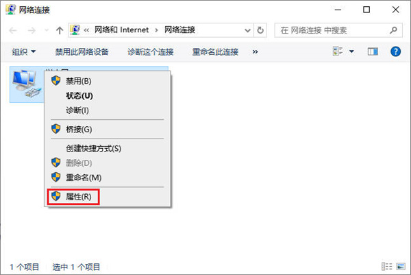 在“网络连接”窗口中,你会看到所有网络适配器的列表,包括你的本地连接(以太网)。右键点击“以太网”图标,选择“属性”打开本地连接的属性对话框。