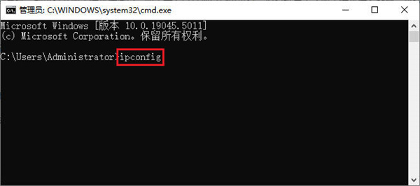 查看当前网络配置:输入“ipconfig”查看当前网络连接的详细信息。