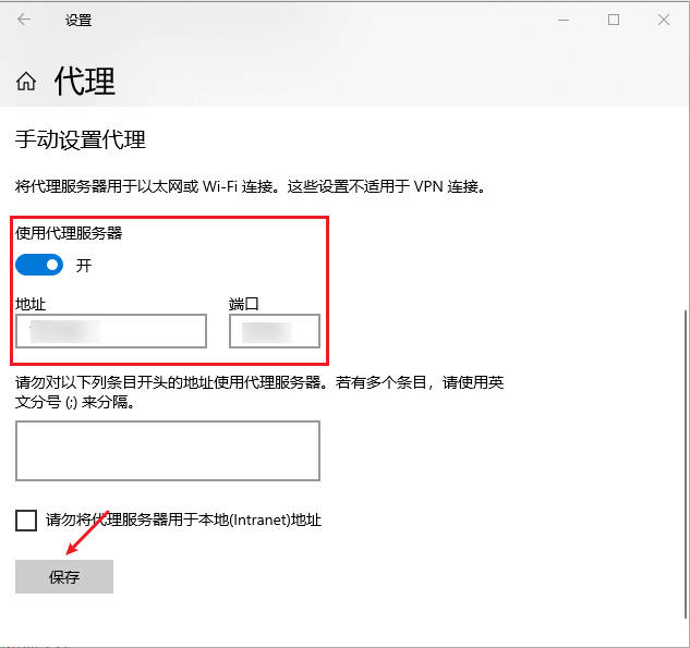 以Windows系统为例,打开【设置】→【网络和Internet】→【代理】,选择开启【手动设置代理服务器】选项,输入代理IP地址和端口号后保存。