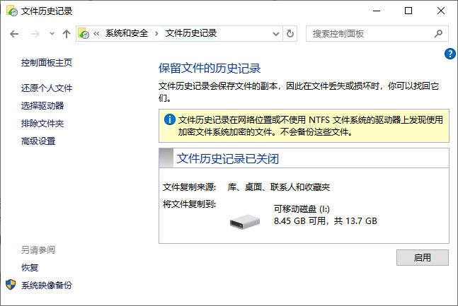 2、利用文件历史记录或系统备份
