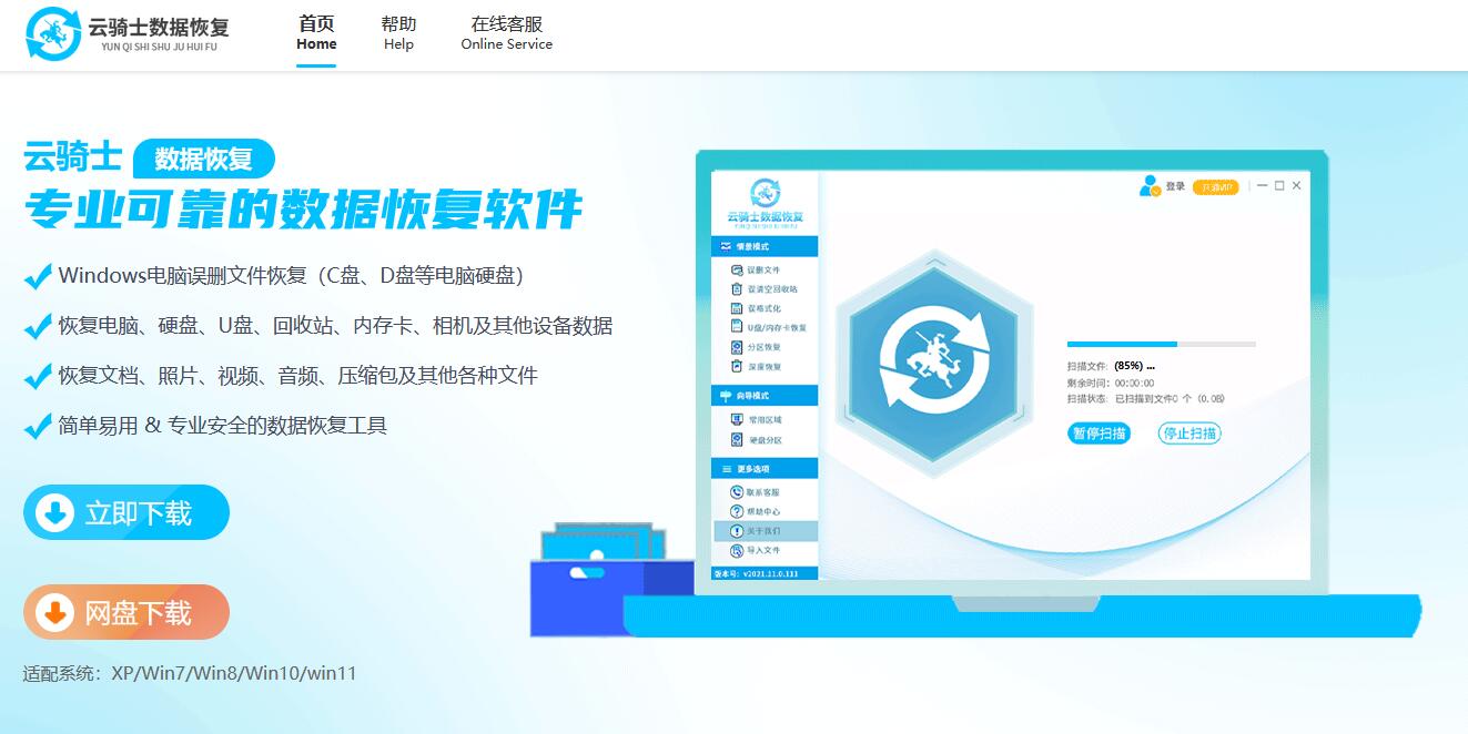 在XP/Win7/Win8/Win10/win11电脑上下载安装云骑士数据恢复软件。