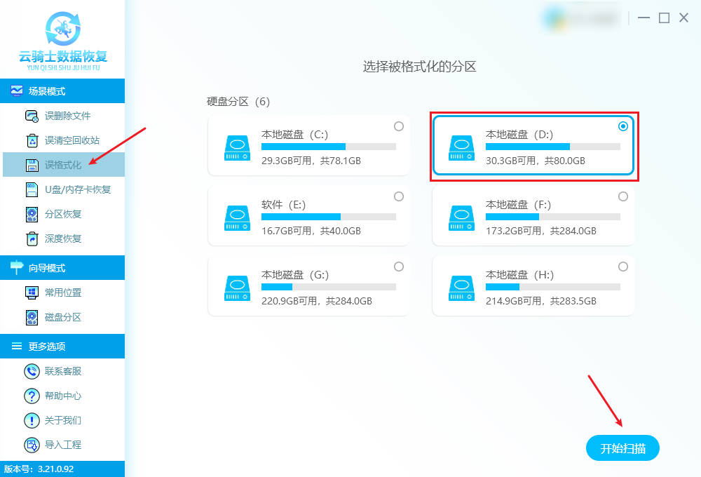 在没有备份的情况下,我们可以借助数据恢复软件来尝试恢复被格式化的D盘数据。以专业的云骑士数据恢复软件为例,只要能扫描出来且能正常预览的都是可以恢复的,具体操作步骤如下: