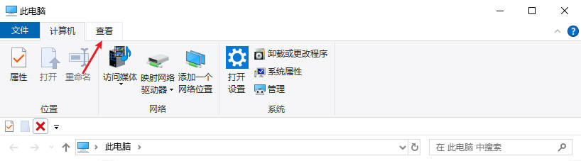 步骤1:右击“此电脑”,点击“打开”,切换到“查看”工具栏。