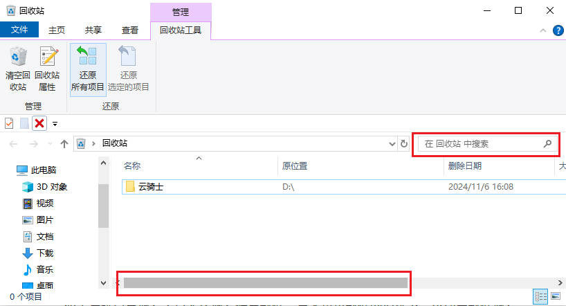 步骤2:在回收站窗口中,浏览或搜索被删除的文件。你可以使用滚动条浏览,或者在搜索框中输入文件名或关键词来快速定位。