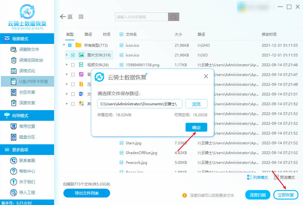 U盘几个月前删除的数据有可能找回,但成功率取决于多种因素。若U盘没有物理性故障能被正常识别,那么可以先试用支持免费扫描与预览的云骑士数据恢复软件进行评估,只要能扫描出来并正常预览都是可以恢复的。