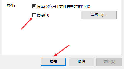 4、如果你希望取消某个文件夹/文件的隐藏属性,可以右键点击该文件夹/文件,选择属性”选项。在弹出的窗口中,取消“隐藏”复选框的勾选,然后点击“确定”即可。