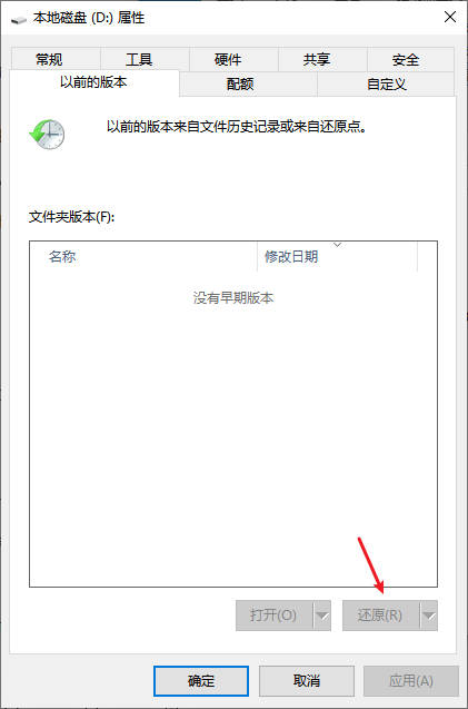 - 在属性窗口中,选择【以前的版本】选项卡。
