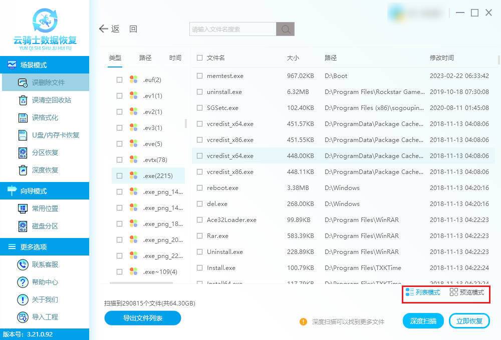 4、筛选预览文件:扫描结束后,可通过列表模式快速筛选文件,然后通过预览模式预览文件。