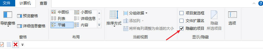 4、勾选【隐藏的项目】选项。