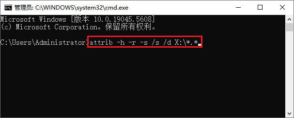 方法2:使用CMD命令取消隐藏属性