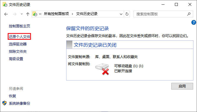 - 点击「还原个人文件」,浏览备份的历史版本。
