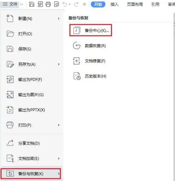- 点击左上角「文件」→「备份与恢复」→「备份中心」。