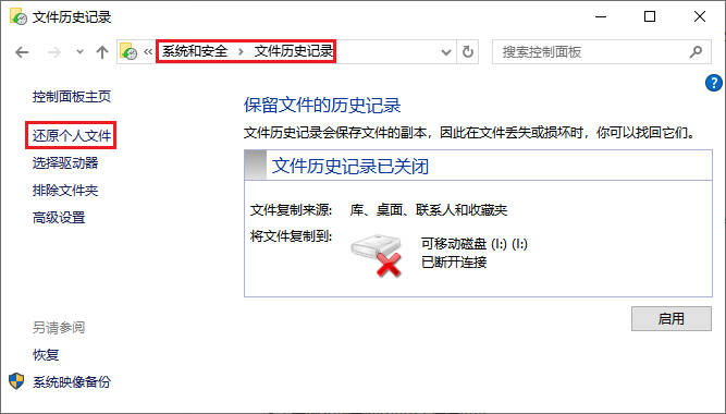 - 此方法前提是事先已设置并启用了文件历史记录功能。