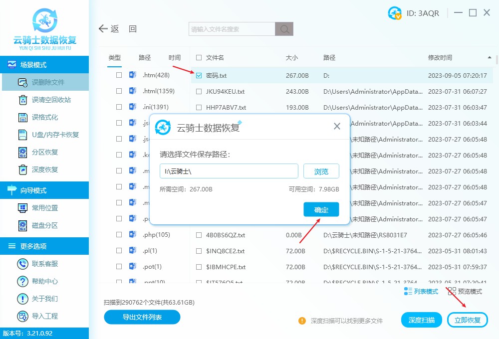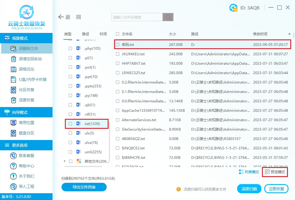 例如云骑士数据恢复软件提供直观易用的操作界面,让普通用户也能轻松完成数据恢复。该软件支持从硬盘、U盘、移动硬盘等各类存储设备中恢复因误删、格式化、病毒攻击等原因丢失的多种文件类型,包括TXT文本文件。