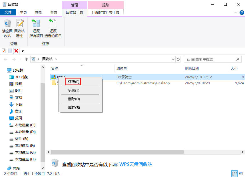 如果撤销快捷键无效,zip文件删了怎么恢复?Windows系统默认会将删除文件暂存回收站,这时我们可以尝试从回收站中恢复,具体操作步骤如下: