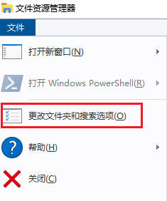 在windows文件资源管理中点击“文件”-“更改文件夹和搜索选项”。
