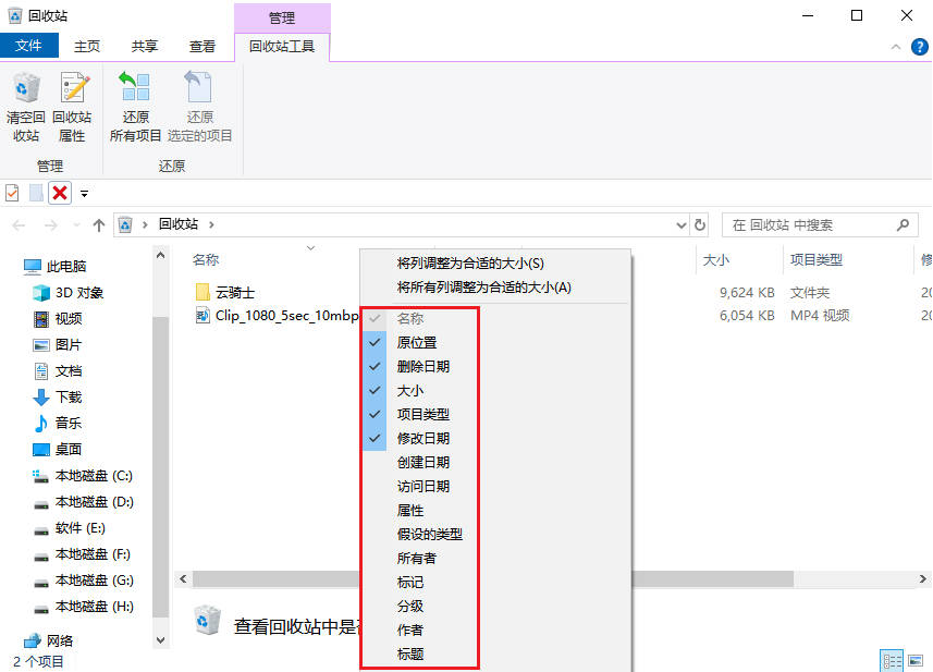 方案2、检查回收站恢复MP4视频文件