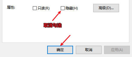 4. 取消隐藏属性: