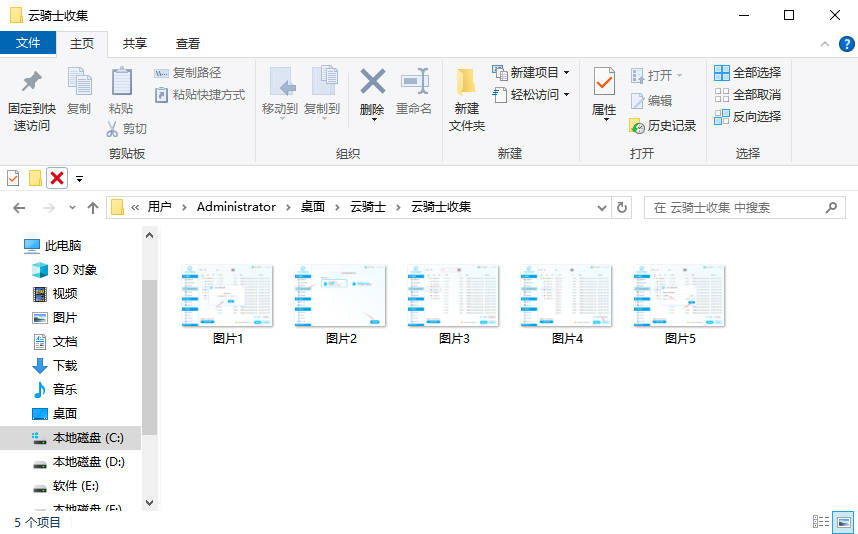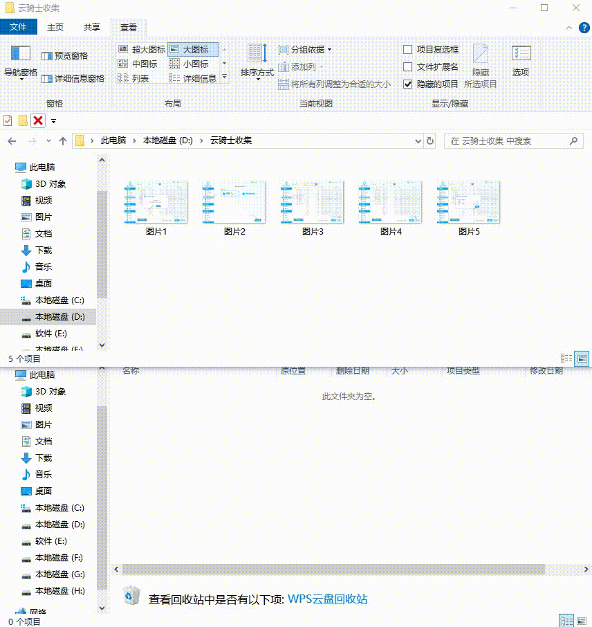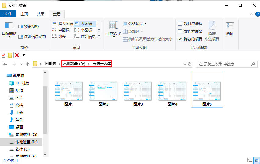 1、为测试恢复效果,我们在D盘云骑士收集命名的文件夹中存入五张图片,然后对这五个图片进行命名(图1~图5)。