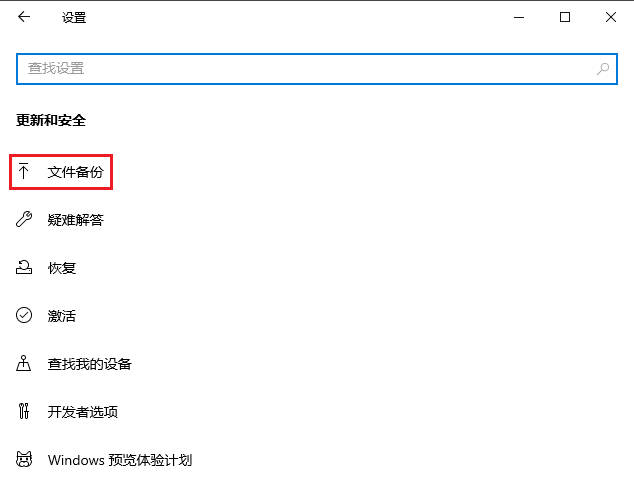 - 打开“设置”>“更新和安全”>“文件备份”。
