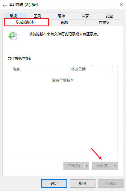 在文件资源管理器中右键点击G盘或目标文件夹,选择「属性→以前的版本」。系统会显示按时间排序的备份副本,选择删除前的版本,点击「还原」即可。