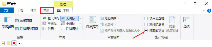 - 打开文件原本所在的文件夹 → 点击顶部「查看」菜单 → 勾选「隐藏的项目」选项。