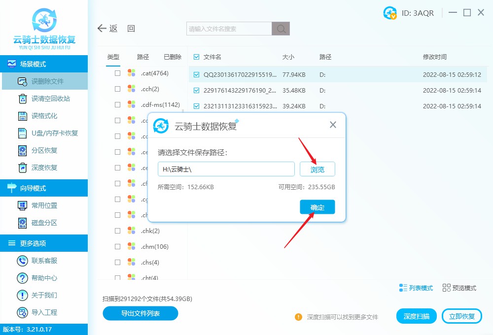 步骤1:运行云骑士数据恢复软件,在主界面选择场景模式中的“误删除文件”。