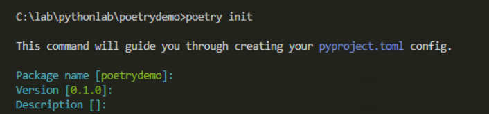 mkdir poetrydemo cd poetrydemo poetry init
