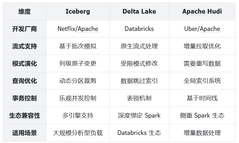 同类技术对比(Iceberg vs Delta vs Hudi)