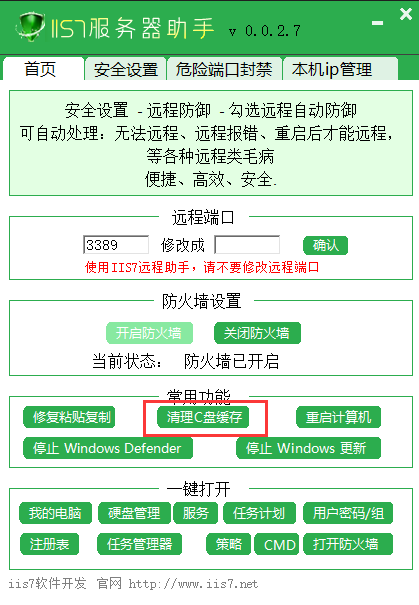它可以清理服务器日志等缓存垃圾,有的系统,因设置问题。缓存会吃大量 C 盘空间。得定时清理,这时候, IIS7 服务器助手就能够很好的帮您解决问题。