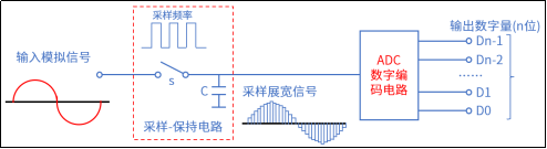 采样和保持通常是在采样-保持电路中完成,量化和编码通常在ADC数字编码电路中完成。