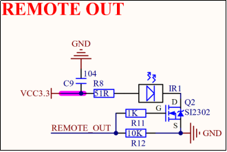 红外接收头的原理图请参照上一章节的内容,在此不再做出赘述。红外发送头相关原理图,如下图所示。