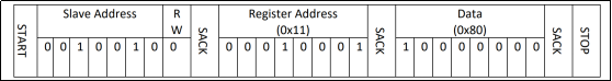 图中,先发送QMA6100P的地址(7位,0X12,左移一位后为:0X24),最低位W=0表示写数据,随后发送8位寄存器地址,最后发送8位寄存器值。其中:START,表示IIC起始信号;R/W,表示读/写标志位(R/W =0表示写,R/W =1表示读);SACK,表示应答信号;STOP,表示IIC停止信号。