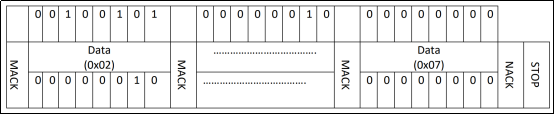 图中,同样是先发送7位地址+写操作,然后再发送寄存器地址,随后,重新发送起始信号(Sr),再次发送7位地址+读操作,然后读取寄存器值。其中:SA,表示重新发送IIC起始信号;MACK,表示MCU应答;NACK,表示设备应答;其他简写同上。
