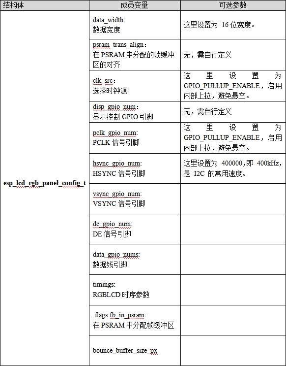 表33.3.2.3 esp_lcd_rgb_panel_config_t结构体参数值描述