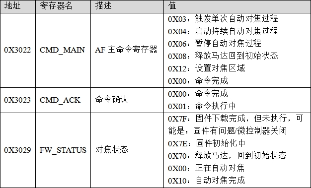 3,写寄存器0X3022为0X06,暂停对焦过程,使镜头将保持在此对焦位置。