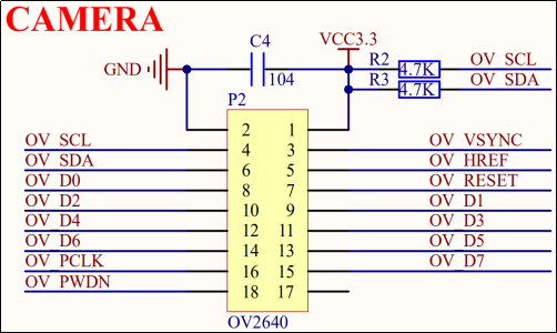 图35.1.1.2 OV5640默认8位连接方式