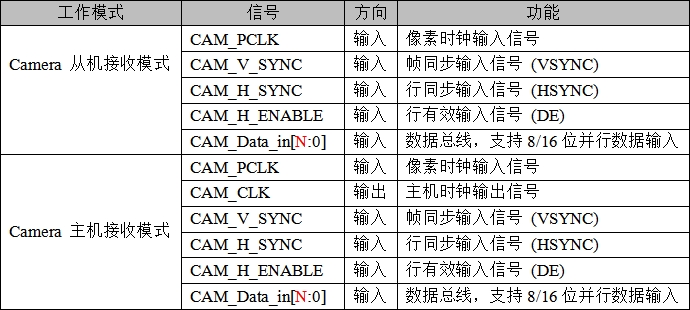 – Camera 数据可由 GDMA 存入内部存储器。