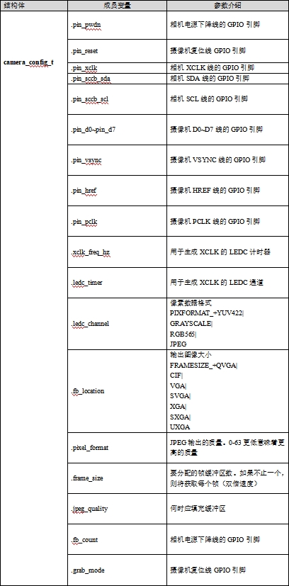 首先定义一个camera_config_t类型的局部结构体变量,然后给结构体中的成员赋值,再调用esp_camera_init(&camera_config)函数进行初始化。如果摄像头模块是OV3660或者是OV5640,还需要进行配置。