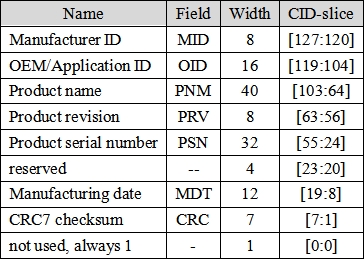 表37.1.5.5 卡CID寄存器位定义