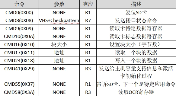 表37.1.2.2 SD卡部分命令