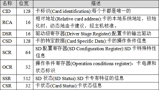SD卡有自己的寄存器,但它不能直接进行读写操作,需要通过命令来控制,SDIO协议定义了一些命令用于实现某一特定功能,SD卡根据收到的命令要求对内部寄存器进行修改。表37.1.1.4中描述的SD卡的寄存器是我们和SD卡进行数据通讯的主要通道,如下: